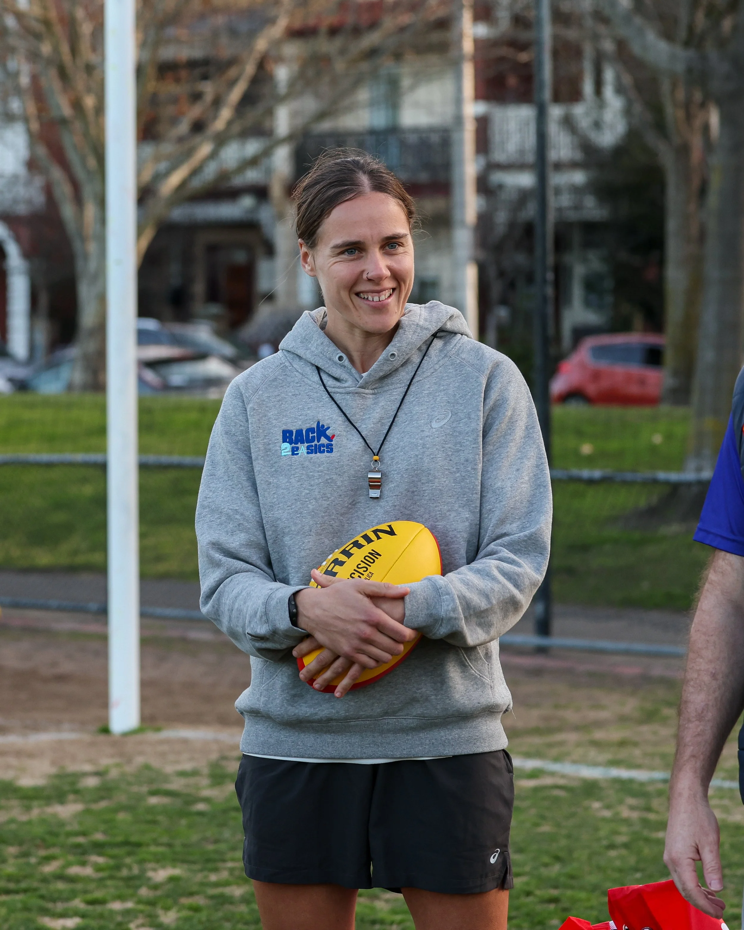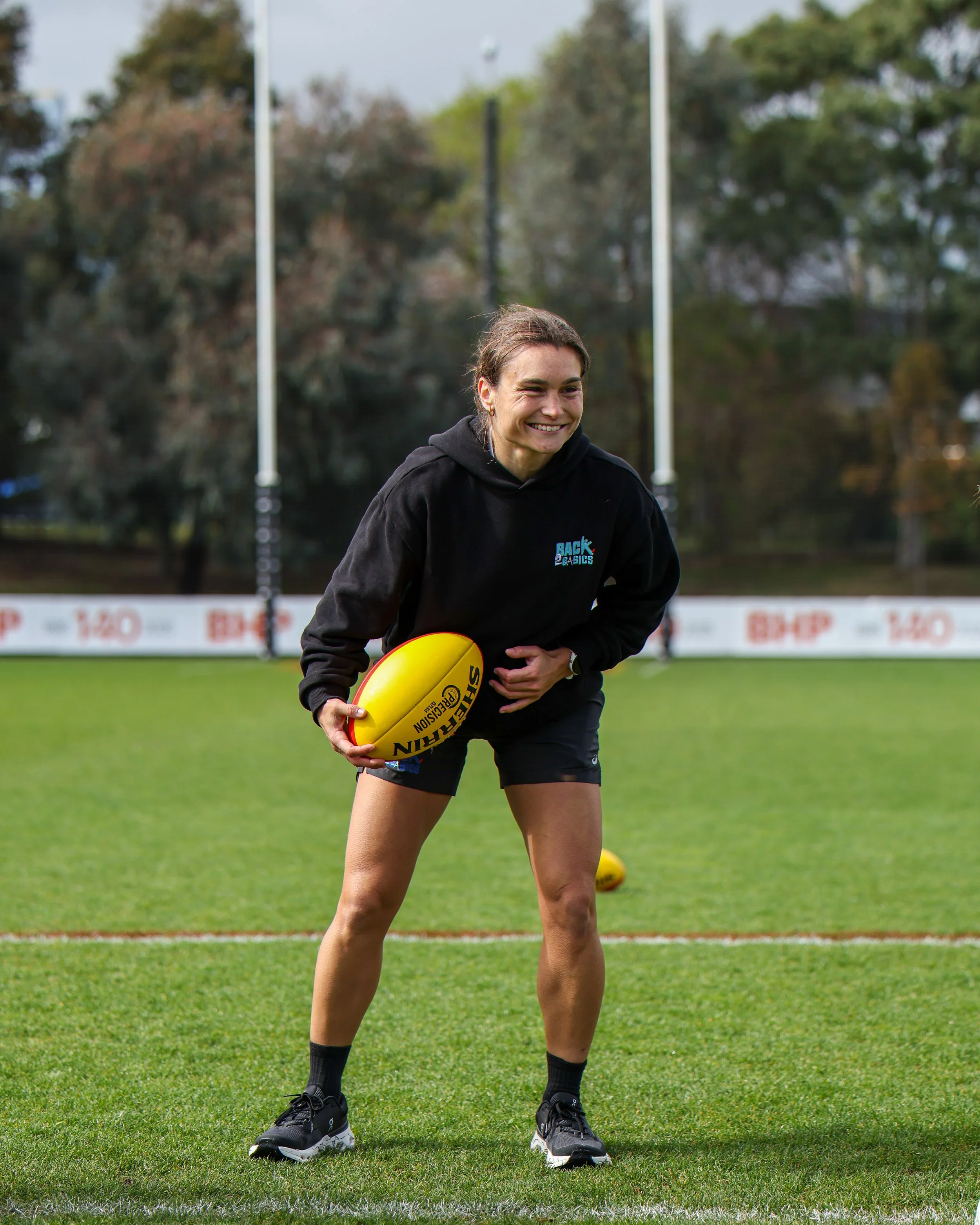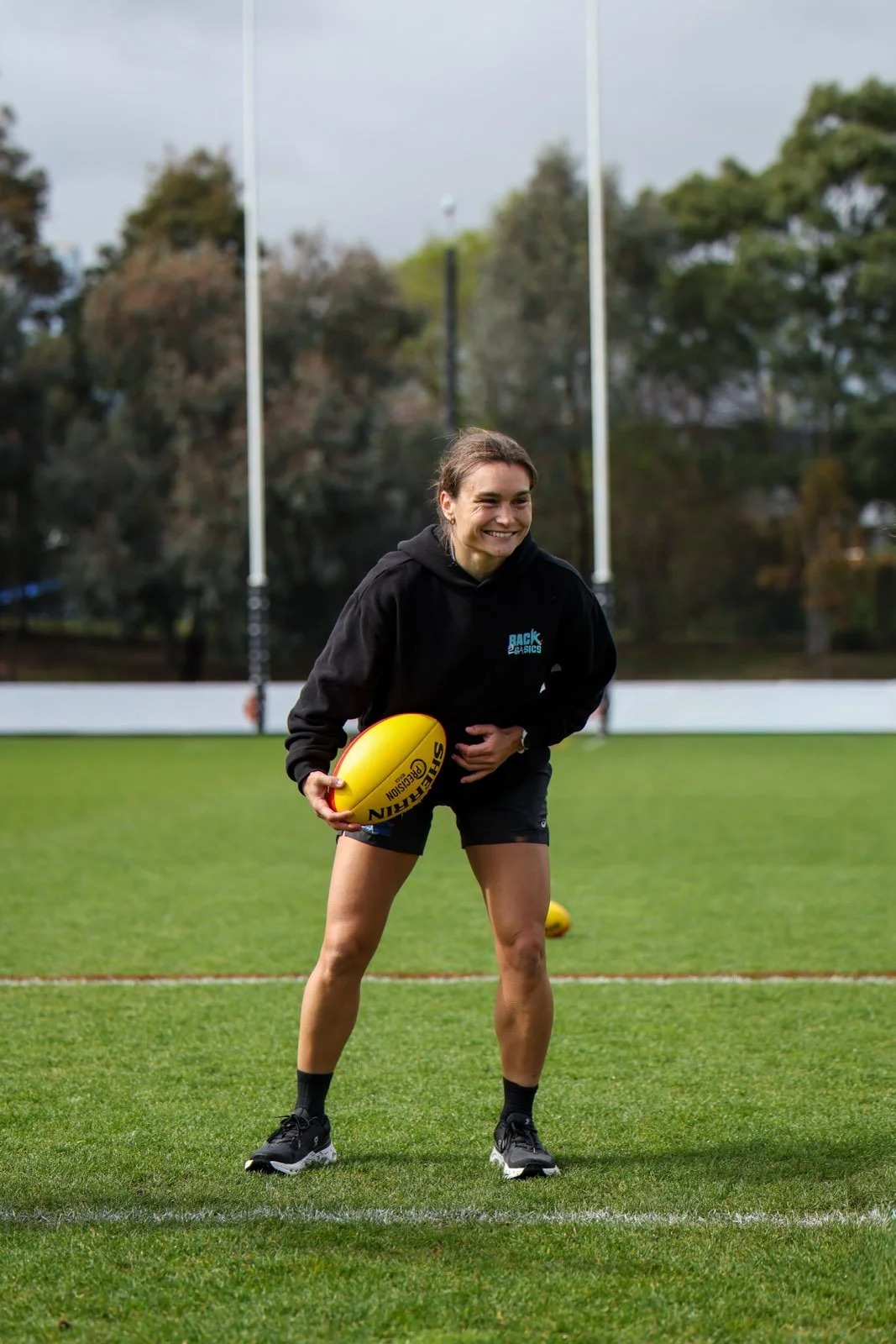 Jasmine Garner is a highly experienced AFLW player known for her versatility, leadership, and deep understanding of the game. With a career built on consistency and a love for football, Jasmine is passionate about helping young athletes develop strong fundamentals and game awareness in a fun, supportive environment.